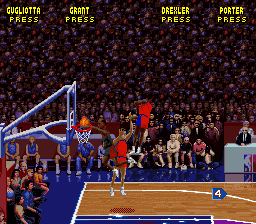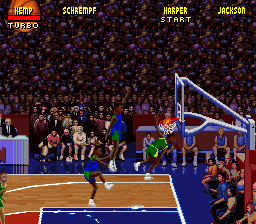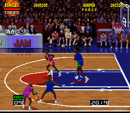 The ULTIMATE arcade JAM comes home! YOU control the super moves, amazing blocks and awesome slam dunks of the NBA's hottest stars! Sky-walking slams - Cannonball, Tomahawk, Helicopter and more! Turbo boost for lightning-fast steals and intense rejections. 4-player adaptable for true arcade competition. AutoStat saves your records and stats as you drive to the Championship. NBA JAM puts you on the court and above-the-rim!